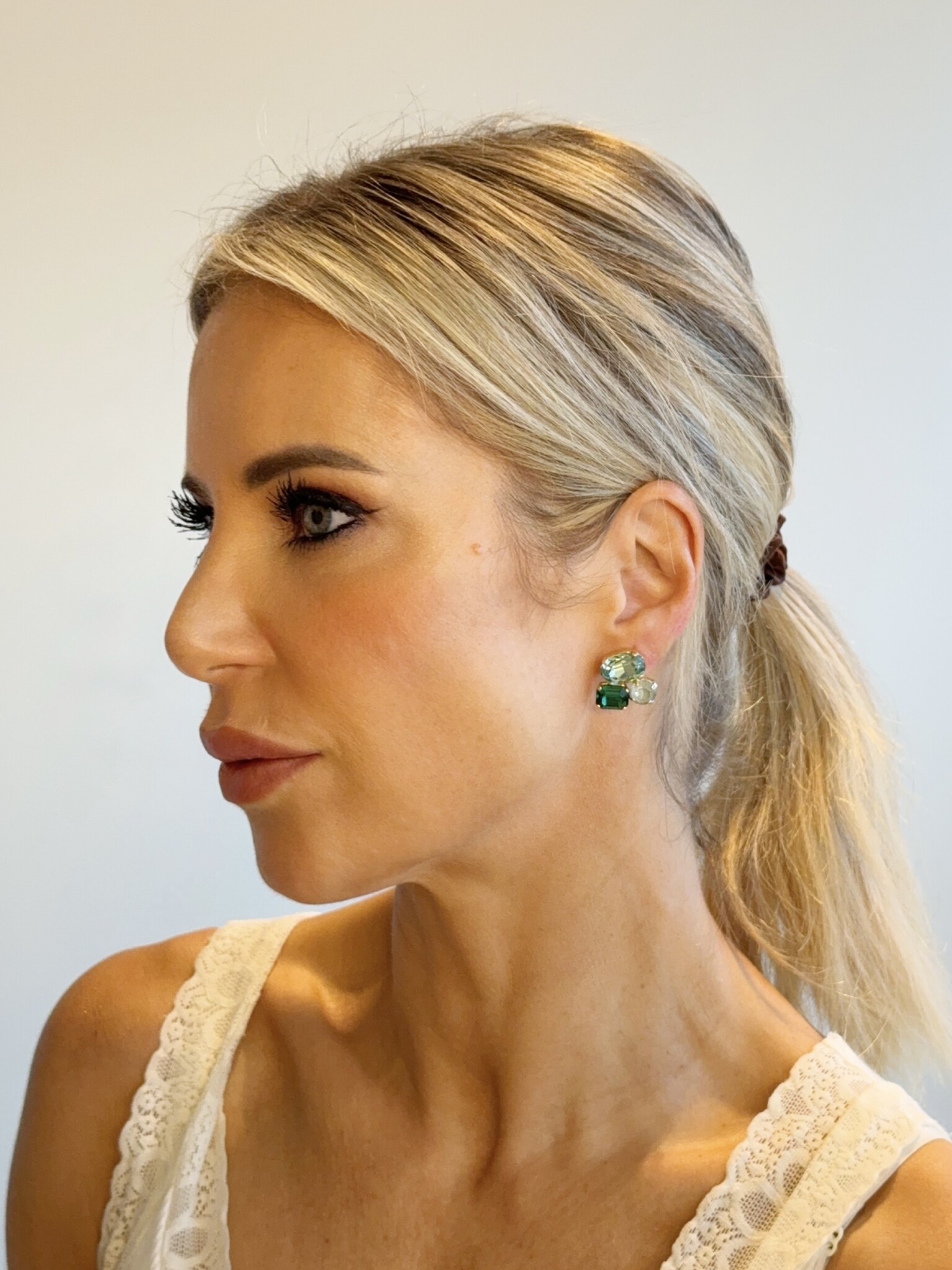 Drie schitterende Swarovski-stenen in verschillende groene tinten maken deze oorbellen een subtiele eyecatcher en een streling voor het oor.