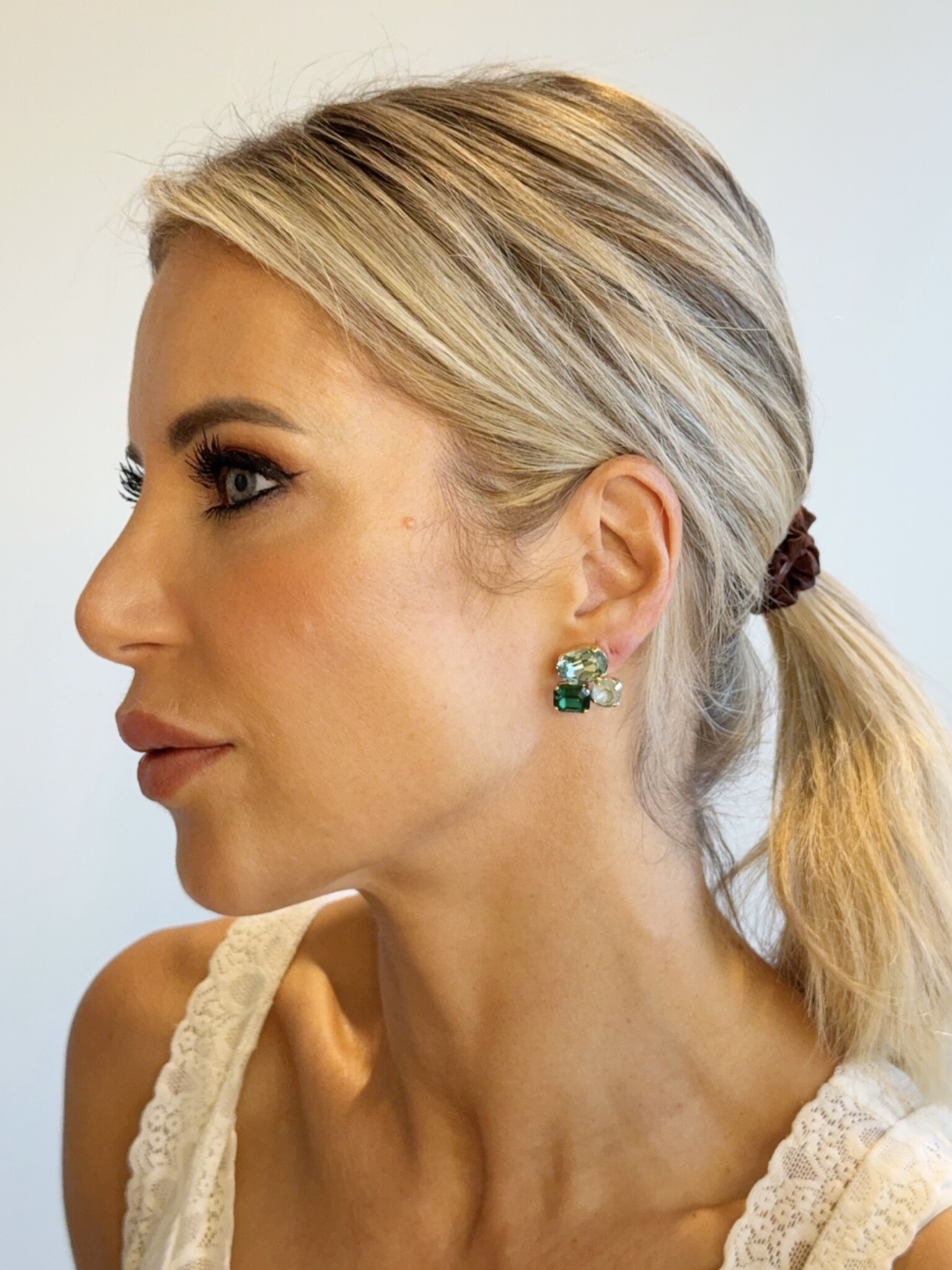 Conny stud oorbellen multi groen