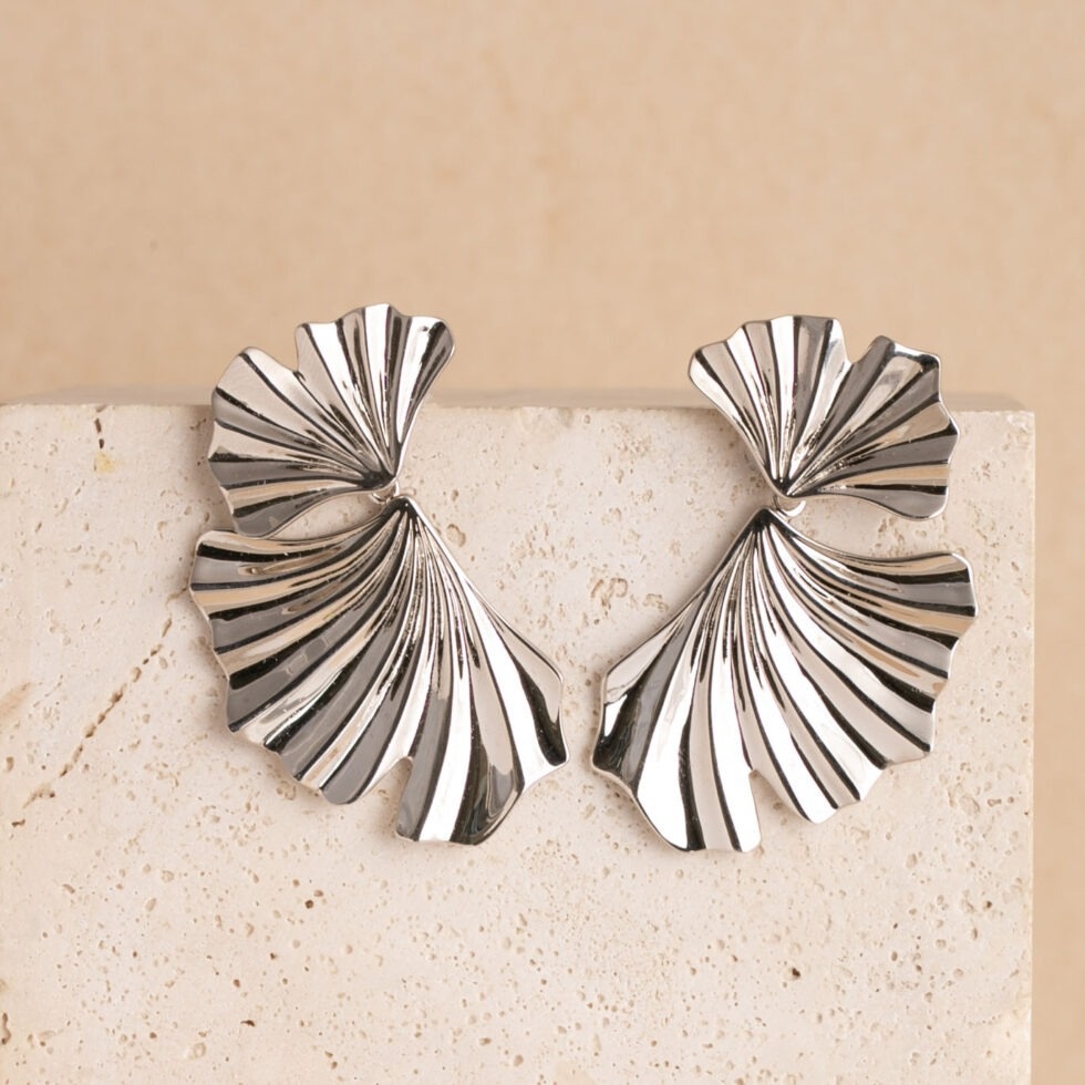 Souvenirs de Pomme Ginkgo zilver statement oorbellen zilver
