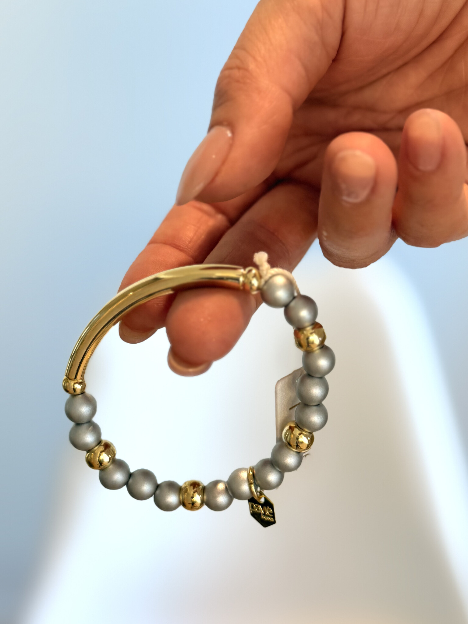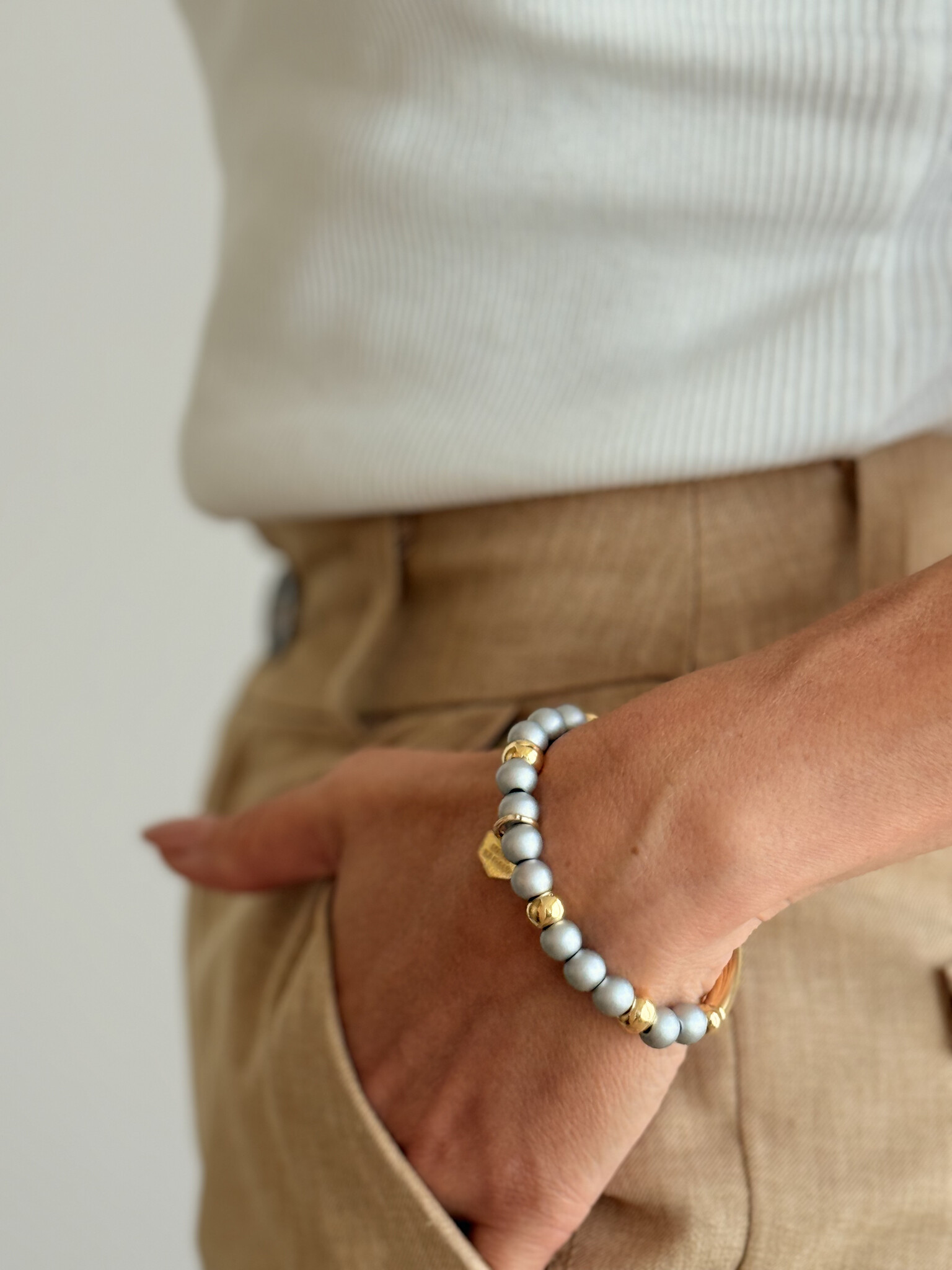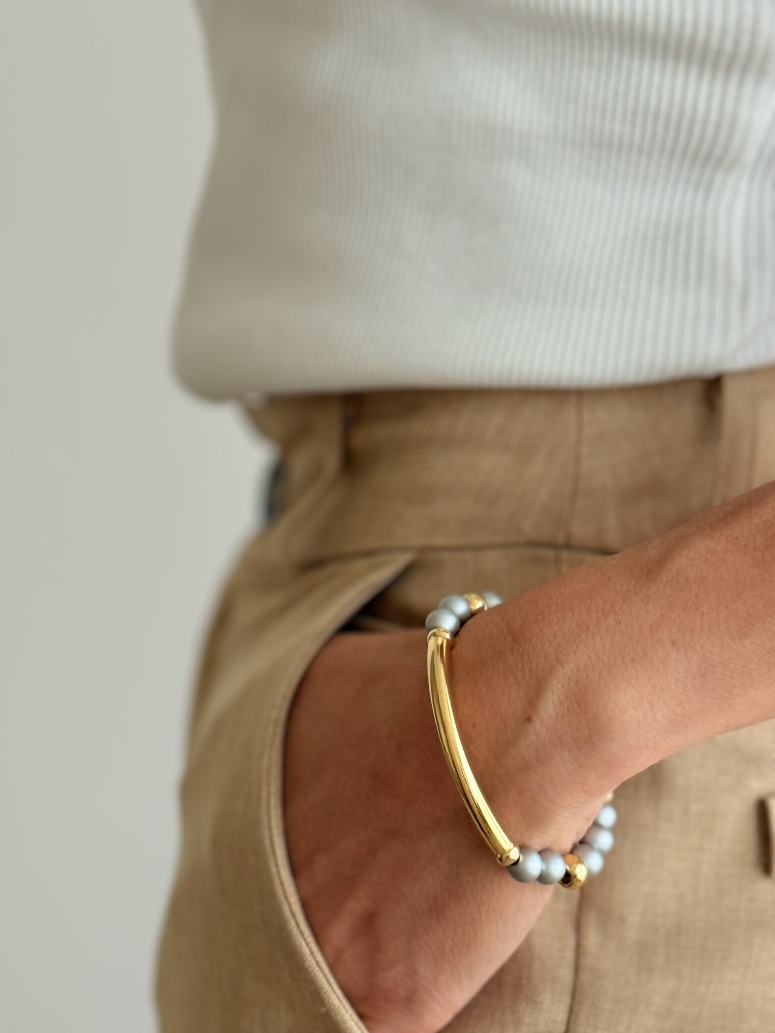 Paviè Laura elastische parelarmband zilver & goud