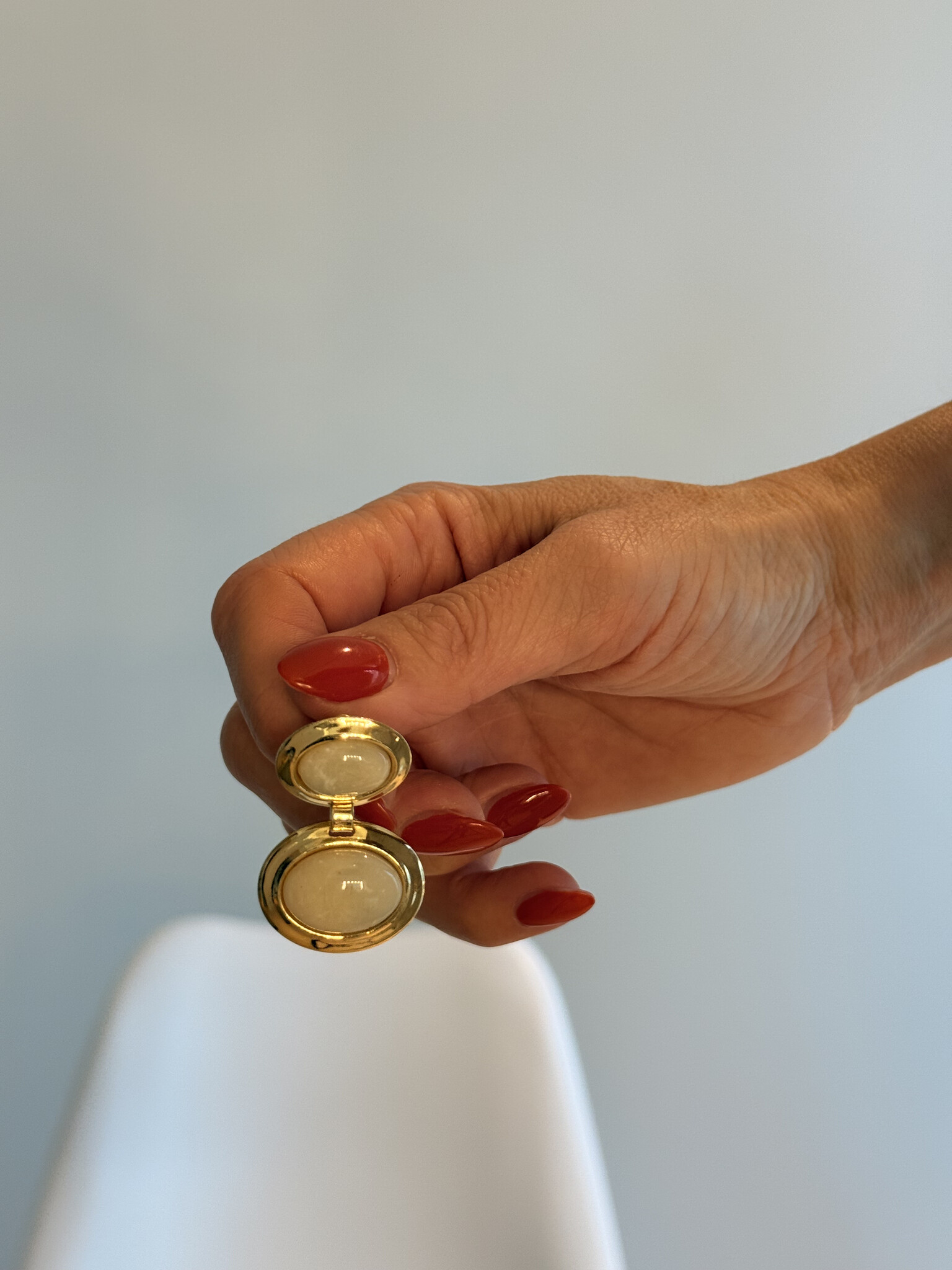Marley vintage dubbele oorbellen ovaal smal goud ivoor