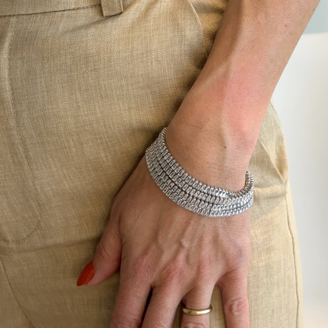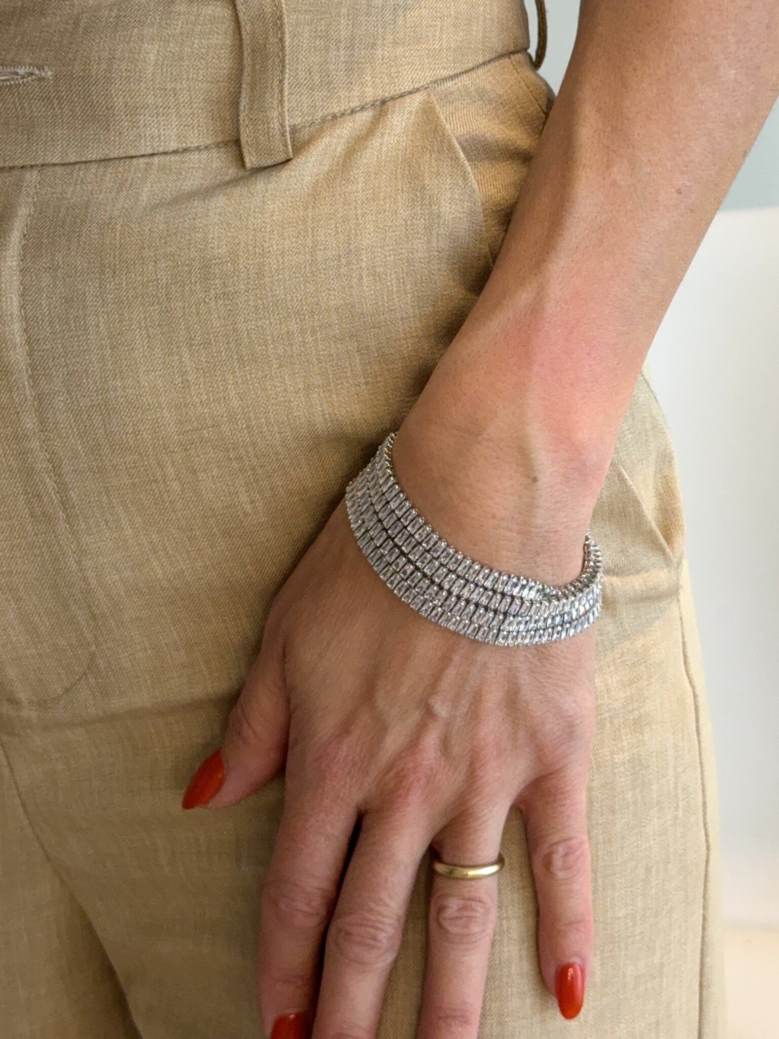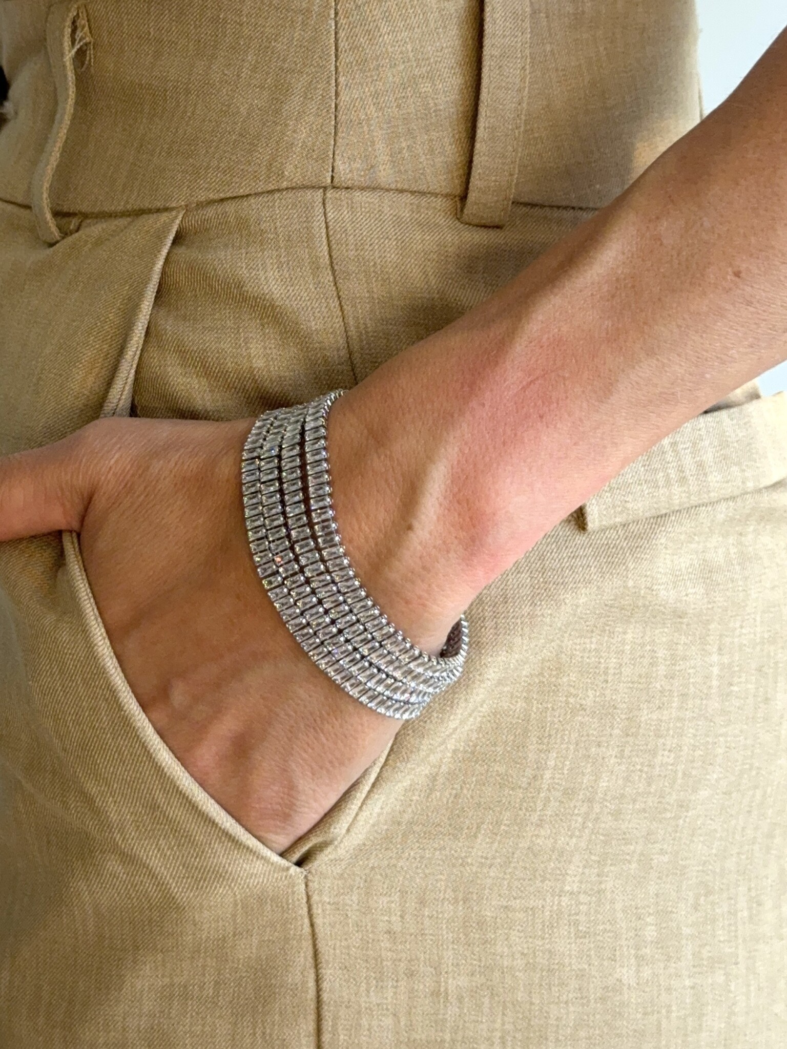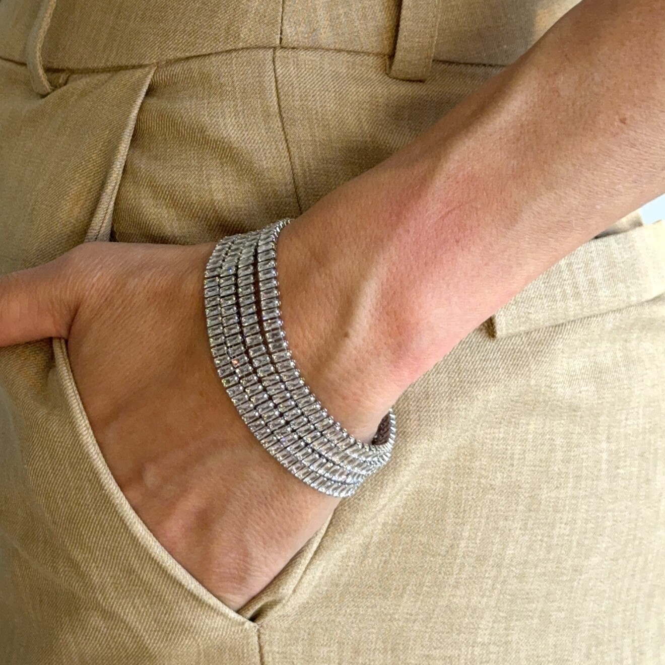 Opvallend en sprankelend: de Tiny Large Strass armband is een musthave voor wie houdt van glans. Zilverkleurig, 15 cm lang met 5 cm verlenging – perfect om elke look te laten stralen.